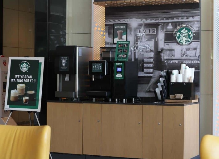 - Вендинговые кофейни. Оборудование монтируется в торговых центрах, на вокзалах, автозаправках, в бизнес-центрах. Кофе готовится автоматически, без участия бариста.